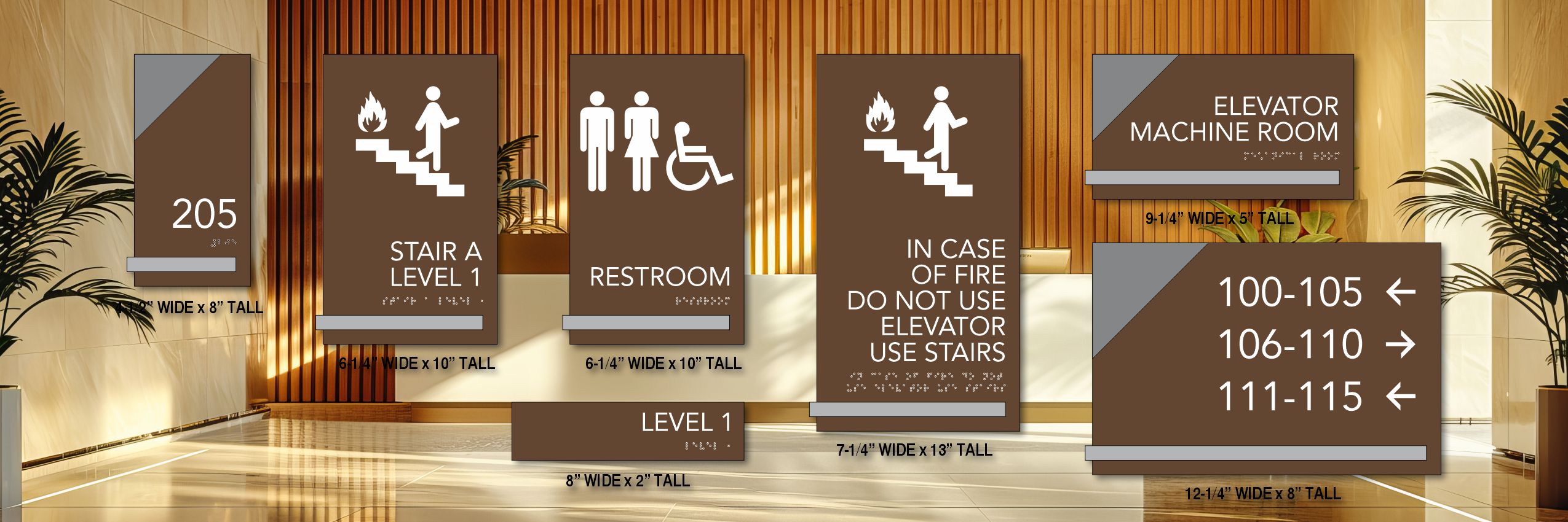 The Camden ADA Sign Collection offers a stylish and functional solution for all your accessibility needs. Designed to meet ADA standards, each sign includes raised text and domed Grade 2 braille. Sign types include: